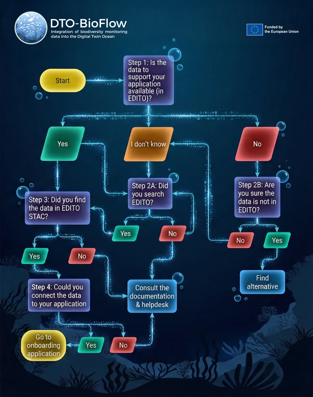 Welcome to the “EDITO Resources” section — a compilation of learning materials and resources provided by EDITO and additional demonstrations created within the DTO-BioFlow project. This page links to selected resources, tutorials, and example workflows designed to help users explore, contribute to, and build on the EDITO platform. A full catalogue of training materials and resources, and related documentation can be further found on the EDITO documentation pages.