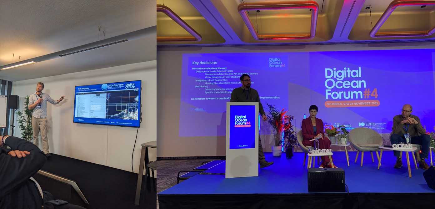 DTO-BioFlow was proud to participate in the Digital Ocean Forum 2025, a key annual event bringing together EU policymakers, marine scientists, industry actors, and digital innovators to advance the co-construction of the EU Digital Ocean Platform under EDITO, building on Copernicus Marine Service and EMODnet. This year’s edition centred on aligning scientific, technical, and policy communities around the development of shared digital services, data infrastructures, and governance approaches for a fully operational Digital Twin Ocean. Within this context, DTO-BioFlow had a valuable space to demonstrate how biodiversity observations are being transformed into interoperable, policy-relevant information that can support modelling, decision-making, and future ocean management services.